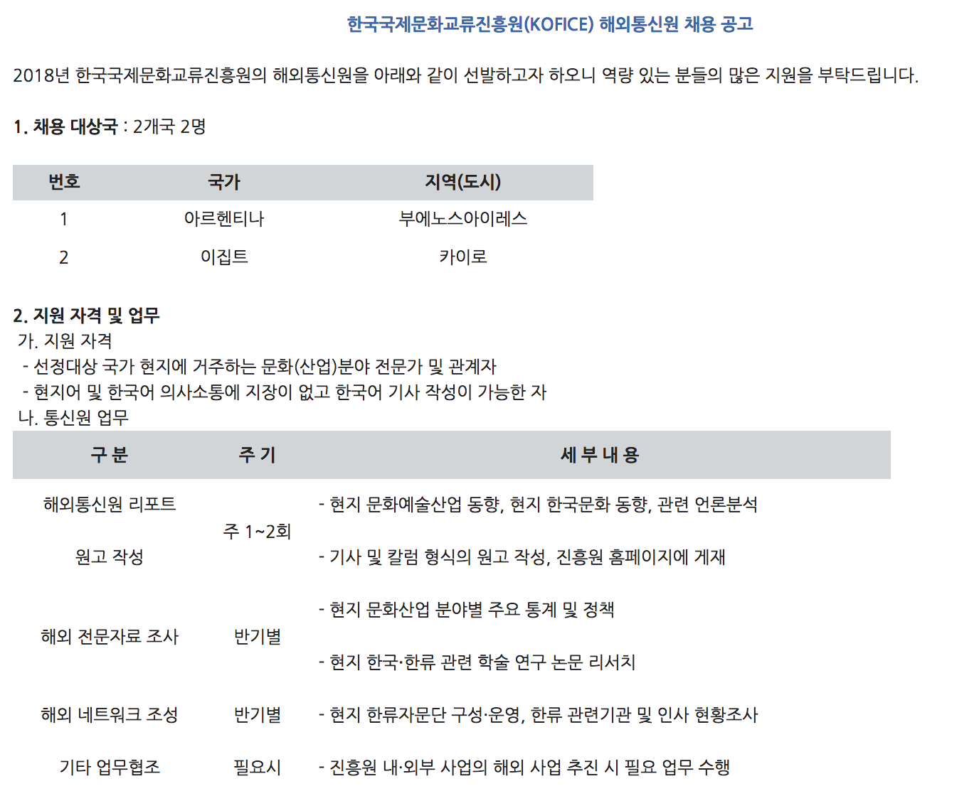 [공지사항] 한국국제문화교류진흥원(KOFICE) 해외통신원 채용 공고