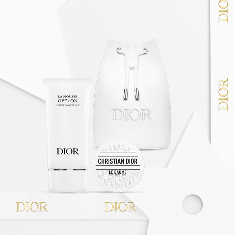 <Revive your skin with an intense hydration ritual. Enjoy the gift of La Mousse OFF/ON and Le Baume miniatures as well as a travel-ready Dior drawstring pouch with your $150 beauty order. Simply log into your Dior.com account and use code DIORCARE24 at checkout.**