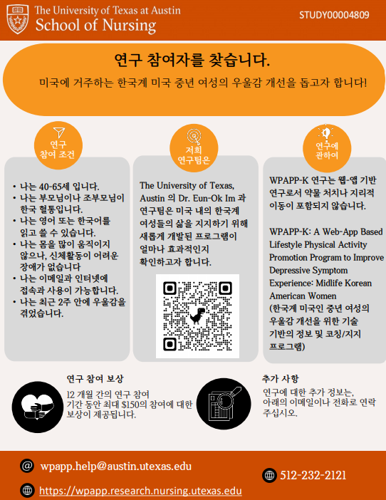 (*WPAPP-K: A Web-App Based Lifestyle Physical Activity Promotion Program to Improve Depressive Symptom Experience: Midlife Korean American Women)