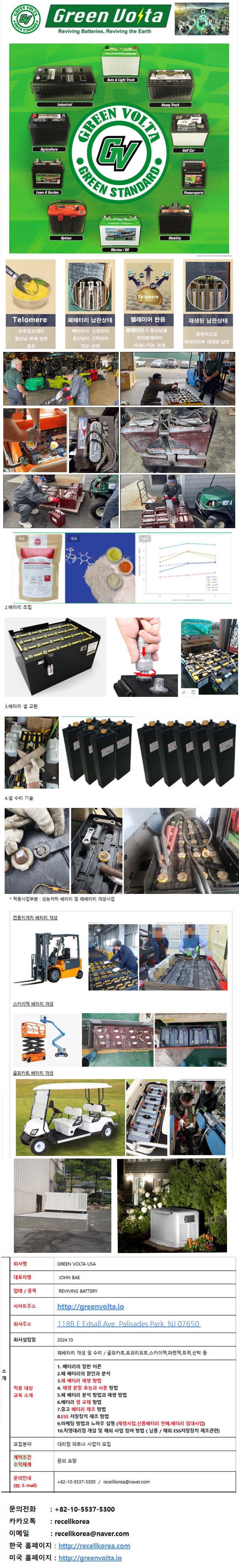 안녕하십니까 배터리 전문기업 GREEN VOLTA USA입니다