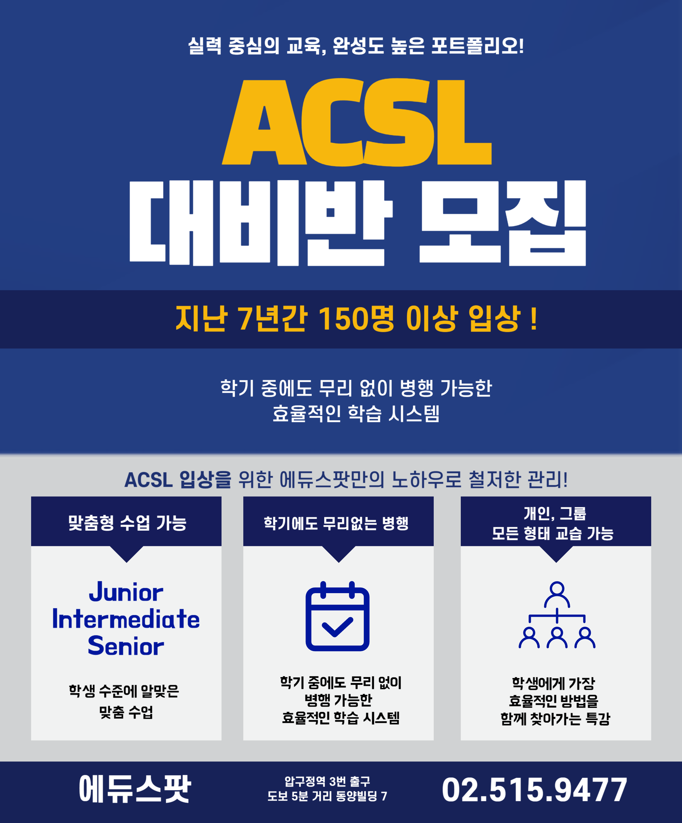 지금 바로 도전하세요! 단순한 스펙이 아닌, 진짜 실력을 키우는 ACSL 준비반. 에듀스팟과 함께라면 여러분의 가능성은 무한합니다.
