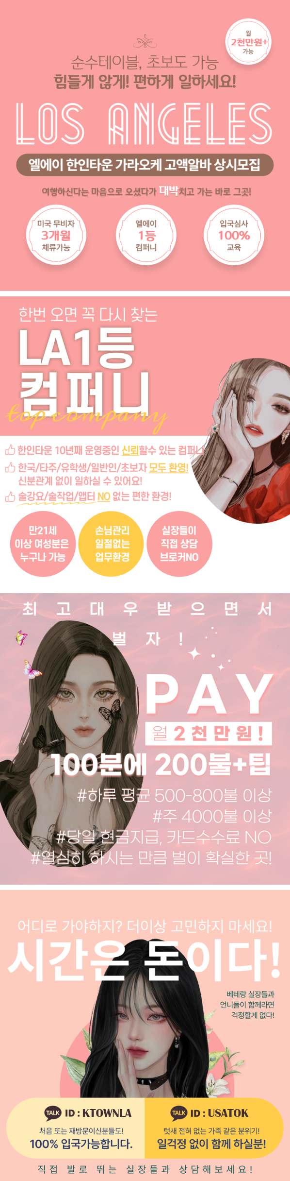 미국 한인타운 엘에이 노래방 도우미 월2만불 이상 카카오톡 ID : KTOWNLA