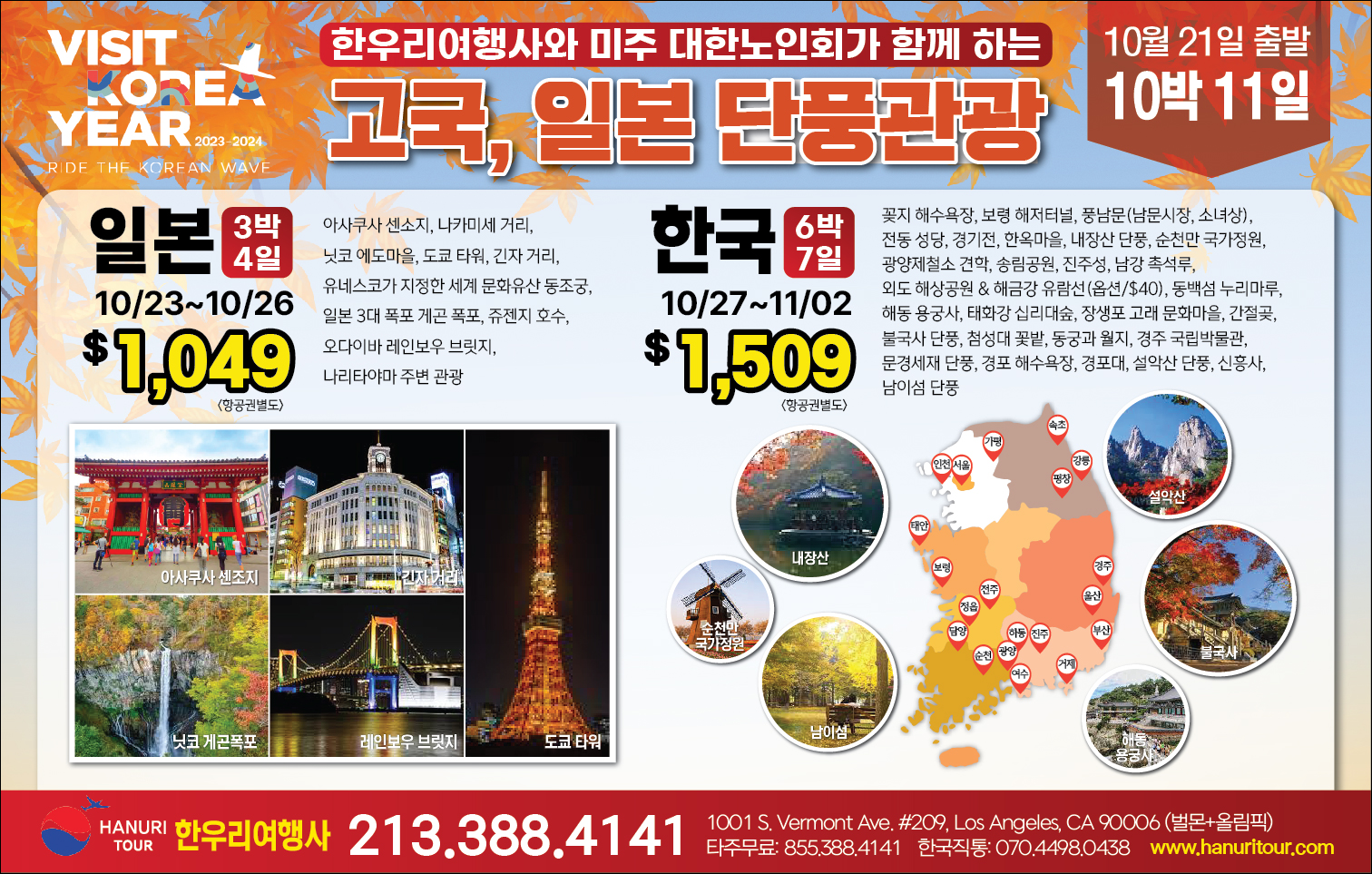 한국및 전 세계 항공(관광)특가 한우리여행사(213-388-4141)-최우수 공인 대리점