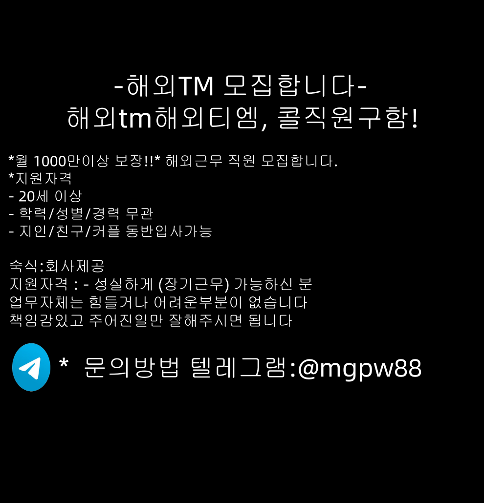 *월 2000만이상 보장!!* 해외근무 직원 모집합니다.(동반입사가능)