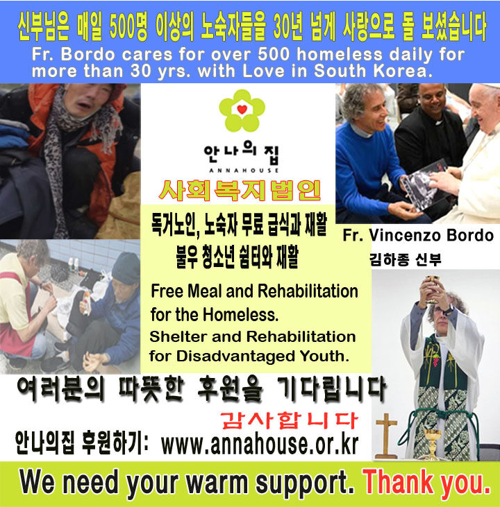 노숙자 불우아동 무료급식소 쉼터 안나의 집에서 여러분의 따뜻한 후원을 부탁 드림니다.